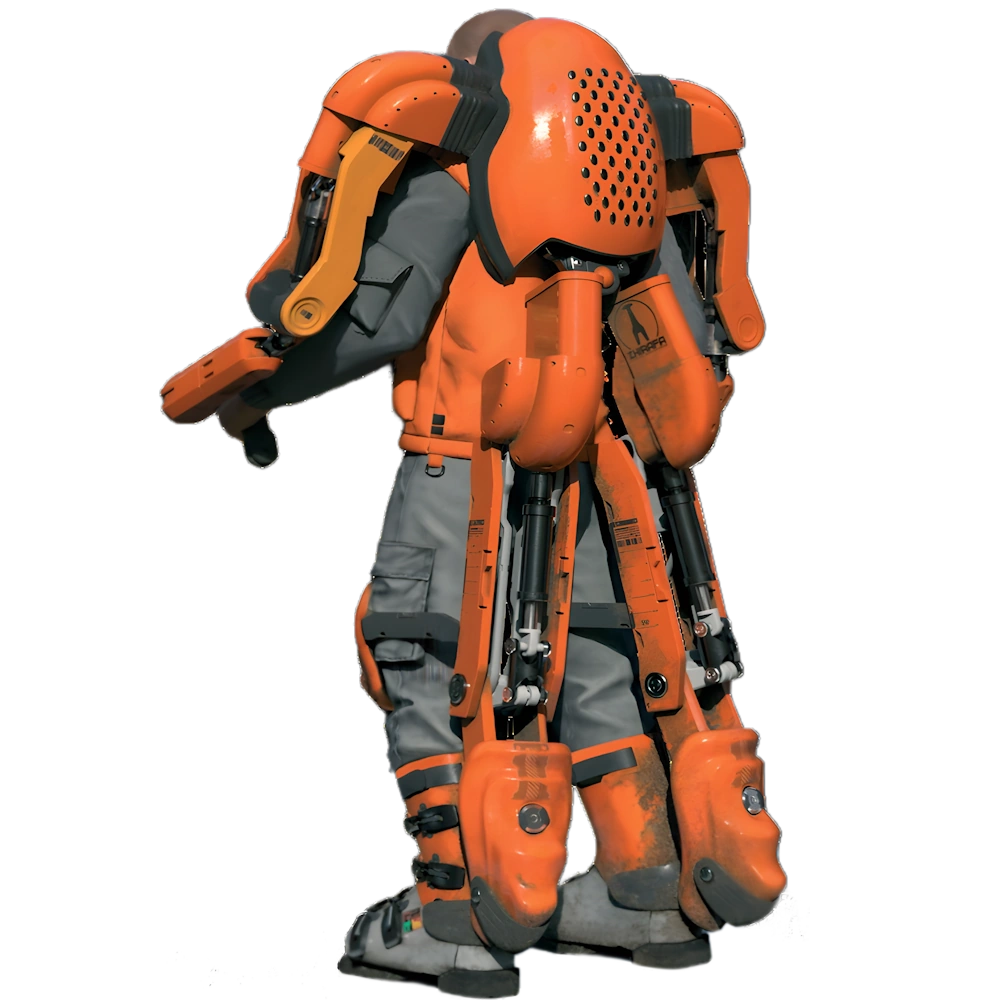 EL-F4-NT компании ZHIRAFA — это экзоскелет, предназначенный для использования любым человеком, а не только тем, кто уже подключен. Вместо Личного Порта для управления, ручное управление расположено на предплечьях и бедрах комплекта, придавая экзоскелету уникальный силуэт строительной техники. Он ненамного больше обычного человека, с гидравлическими опорами для рук и ног, но способен поднимать грузовые ящики и перемещать их, как если бы пользователь был шагающим вилочным погрузчиком.